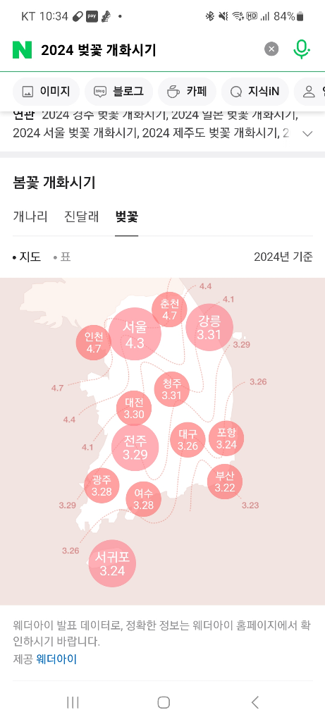 각 지역에 대한 벚꽃개화시기이므로 참고하시기바랍니다.