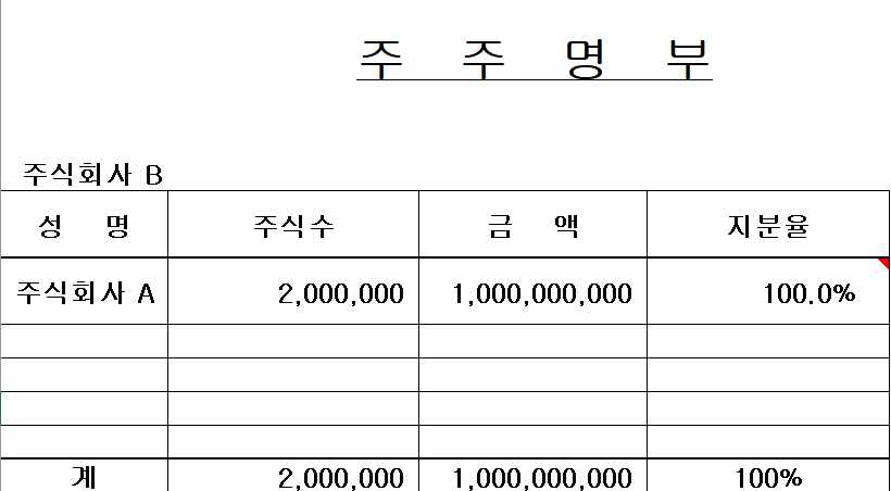 반대로 B사입장에서 A사는 주주에 해당합니다. 따라서 주주명부가 부속서류가 될것입니다.