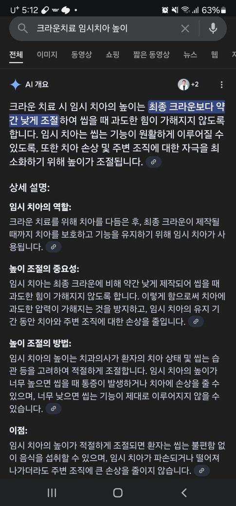 임시치아의 경우 말그대로 임시로 사용하는거라 교합이 정밀하지 않습니다. 약간 교합을 낮게 만들어 놓는 경우가 있습니다.