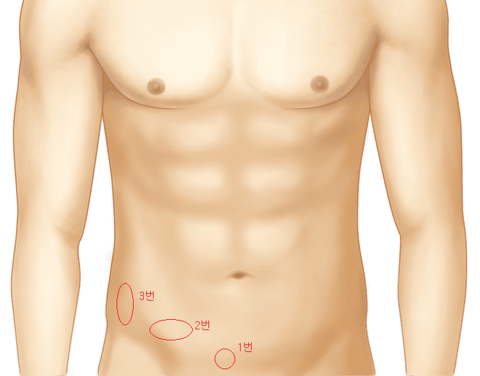 아 그리고 사진의 표시한 부위들은 오른쪽 배에 해당합니다