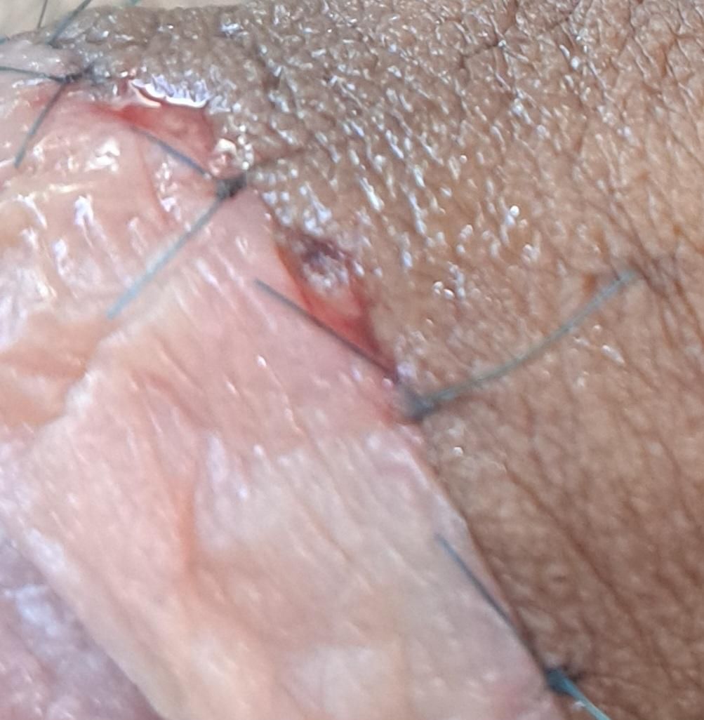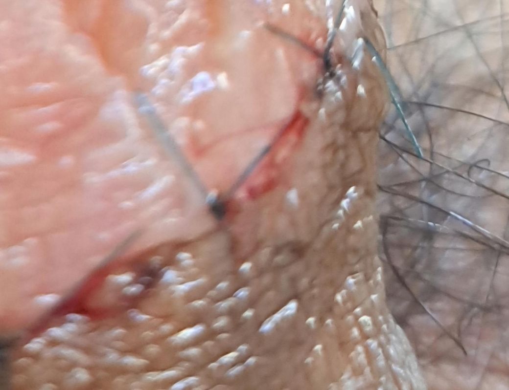 포경한지 11일된 대학생입니다. 집에서 연고바르기 위해 거즈 떼어내는데 그러던 중 거즈에 살점이 조금 떼어져나왔어요. 접합부 혹시 벌어진건지 확인부탁드립니다. 피가 흐르진 않고 면봉을 대면 조금 묻어나오는 정도입니다.