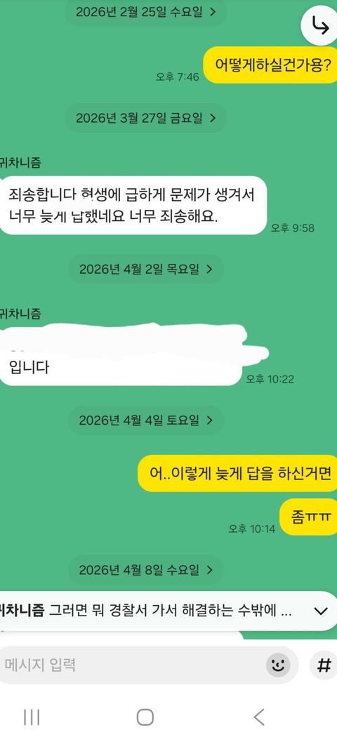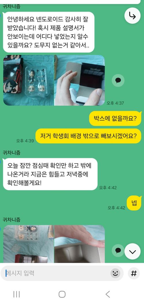 전 환불의사를 내비쳤고 답이 없으시다가