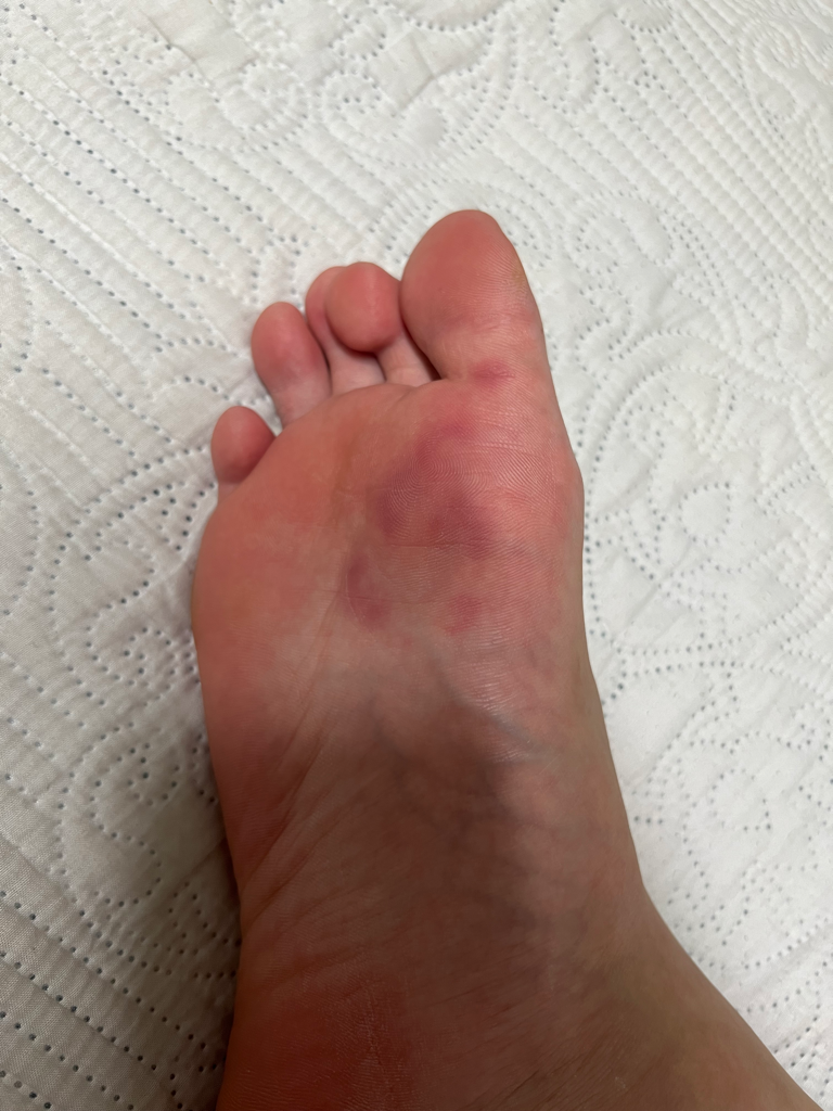 전족부의 표재성 감염의 가능성이 있기 때문에 가까운 피부과에 내원하시어 정확한 진단 및 처방을 받으시는 것을 추천드립니다.
