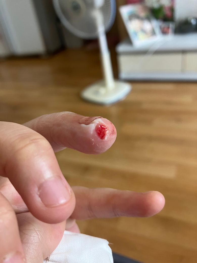 요리하다가 칼에 손가락 살점이 나갔습니다