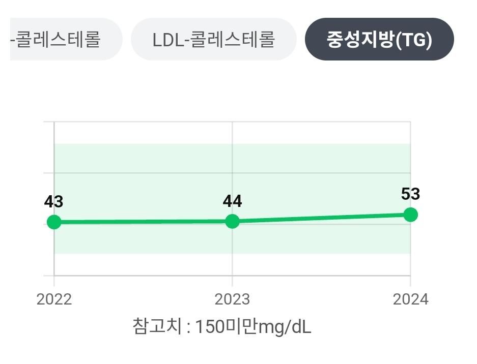 여튼 정리해보면 중성지방은 식단이나 운동에 영향을 빠르게 받는 수치이지만 LDL은 그렇지 못하기 때문에 TG 수치만 조금 변동이 있었던겁니다.