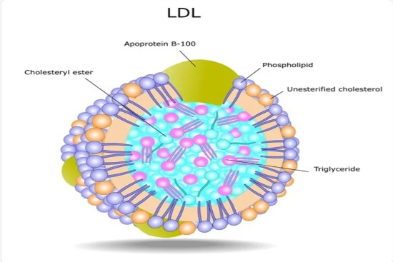 LDL의 경우는 이런 중성지방을 운반하는 물체입니다. 아래 그림에 보면 구형의 LDL 안에 triglyceride라고 표시한 중성지방이 들어있는걸 볼 수 있습니다.