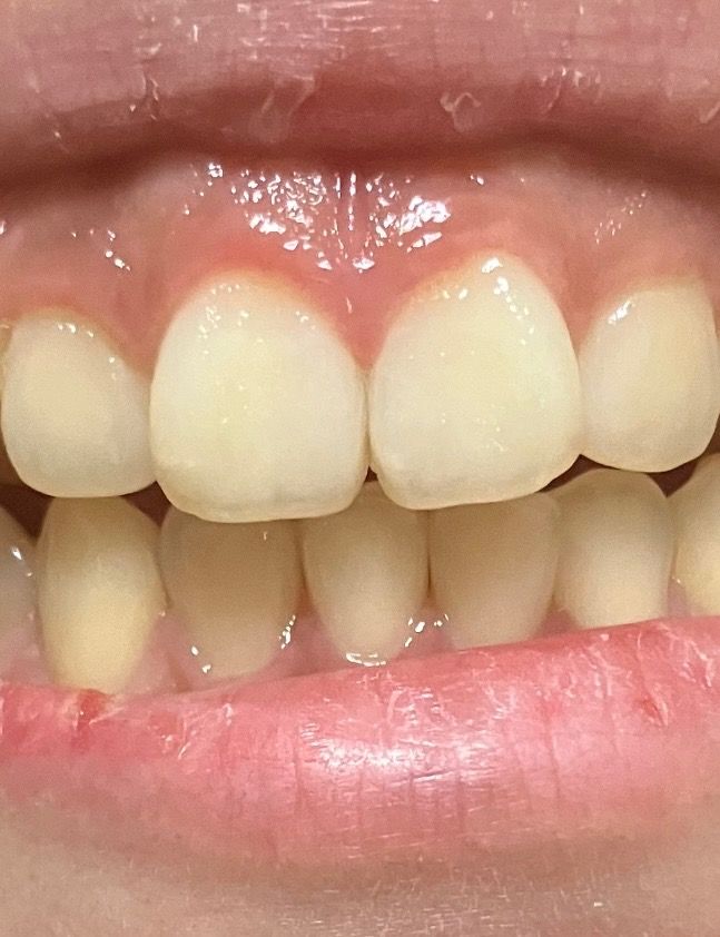 레진이 떨어진 것으로 보이진 않고 레진 접착제가 치아 사이에 있진 않습니다. 이물질 같습니다.