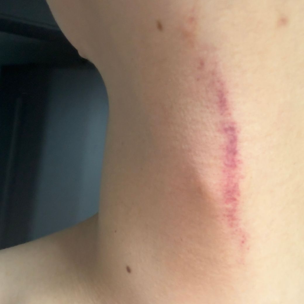 그냥 거울 보는데 목에 붉은색으로 선인지 멍인지 모르는 상처같은게 생겼습니다. 전날까진 없었는데 오늘 갑자기 생겼더라고요. 왜 생긴걸까요?