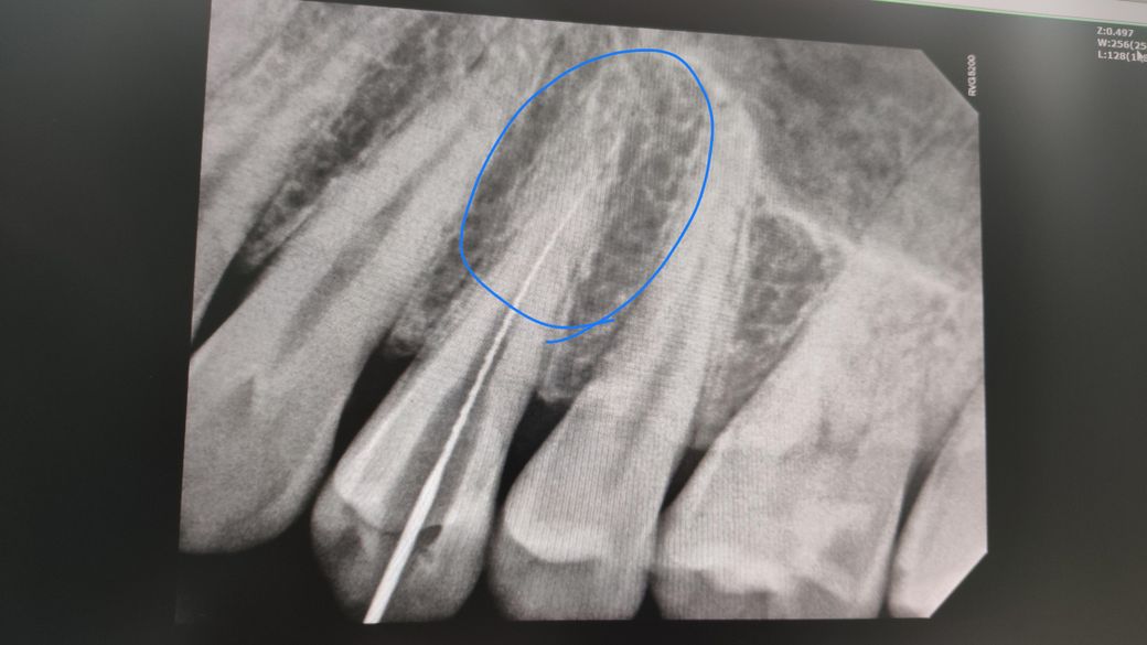 엑스레이 동그라미친 뿌리 부분에 사진보시구 염증이나 크랙이맞는지 확인해주세요 감사합니다.