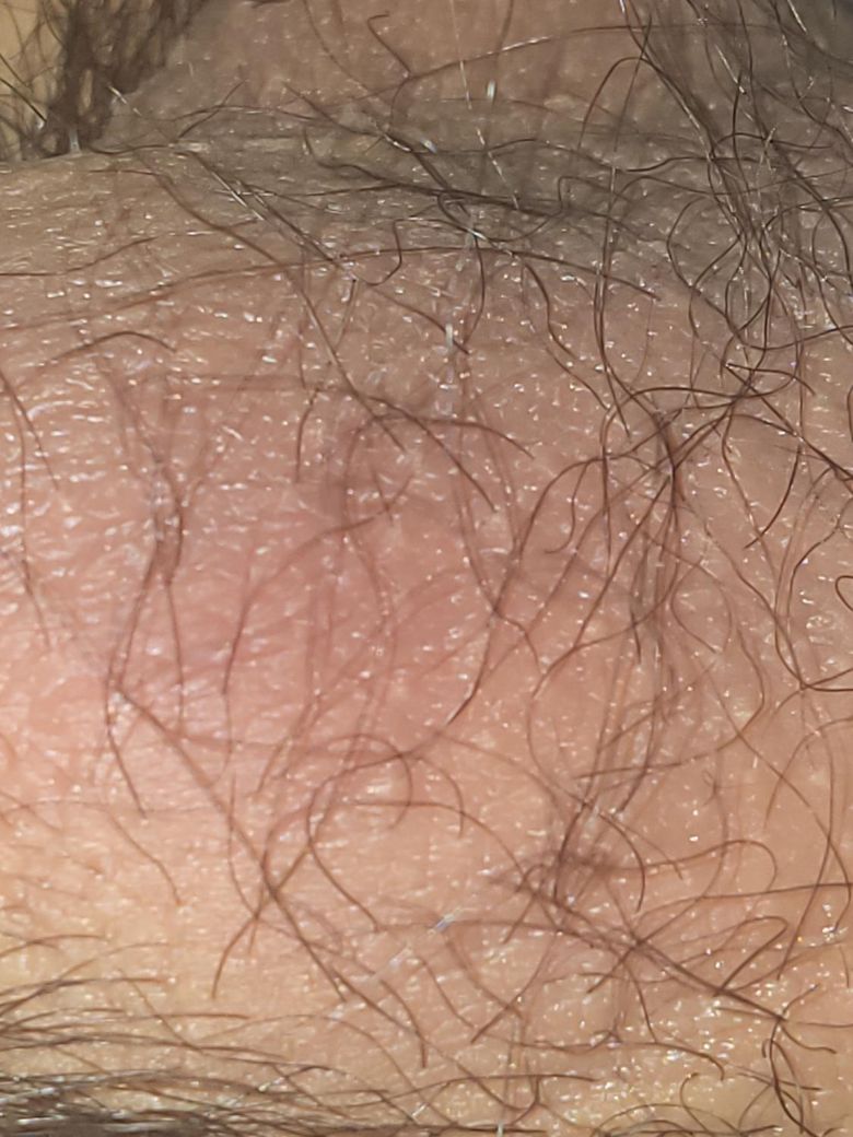 사진을 통해서 보았을 때에는 명확하게 수포성 병변이 있어 보이지는 않아 보입니다. 발적 소견은 보이지만 해당 소견만 놓고 강력하게 헤르페스 등의 질환을 의심하고 감별 진단 내리는 것은 가능하지 않습니다. 단순히 모낭 부위가 관찰되는 것처럼 보이긴 합니다. 우려스럽다면 보다 자세하고 명확한 평가를 위하여 비뇨의학과 진료 및 검진을 받아보시는 것이 필요할 것으로 사료됩니다.