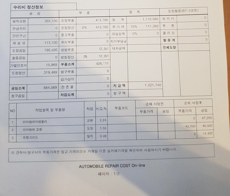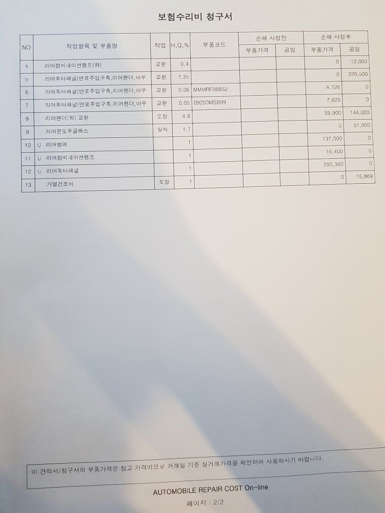 차 사고 견적서 합리적인지 모르겠어요