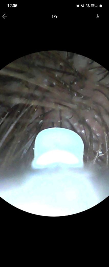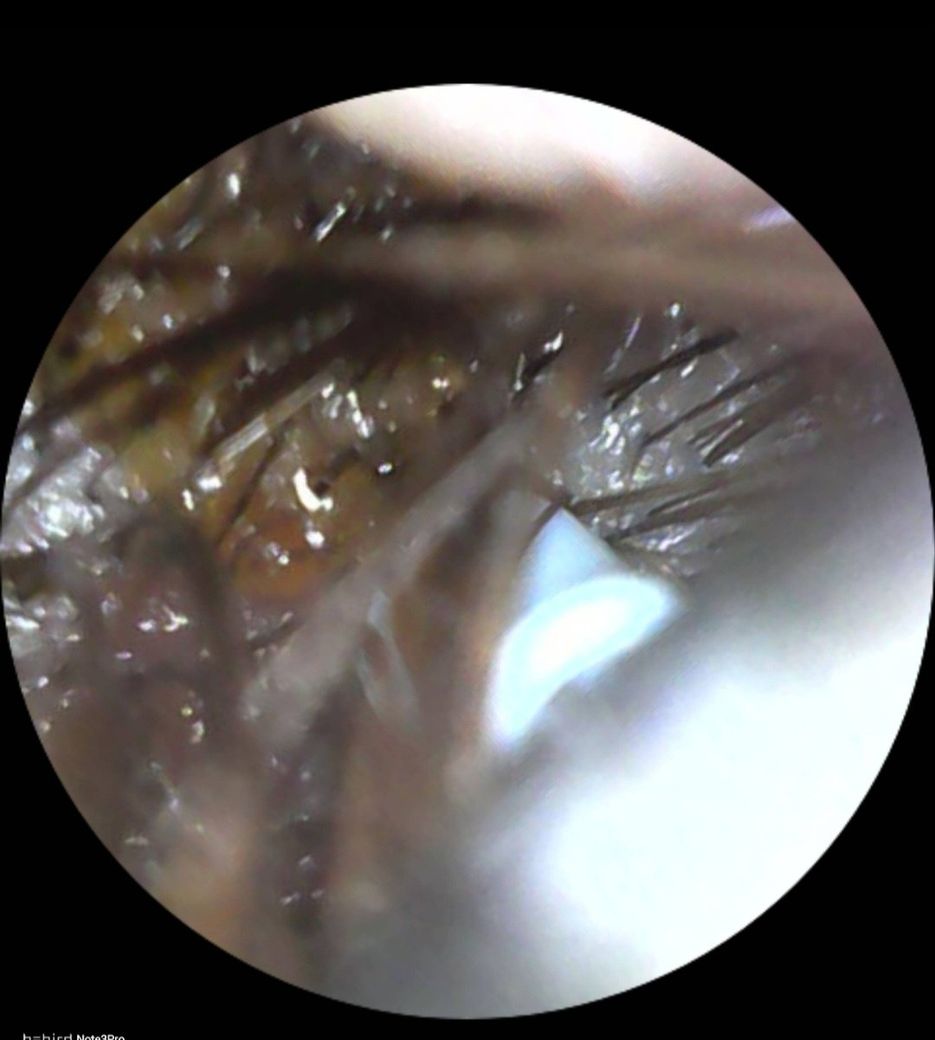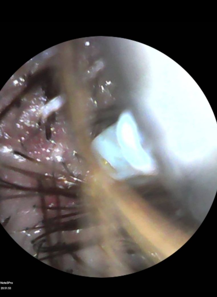 문제 부분을 귀 내시경이 있어서 두피 상태를 확인해보니 두피 여기저기가 붉게 변했고, 노란색 딱지가 덕지덕지 붙어 있는게 확인되었습니다.