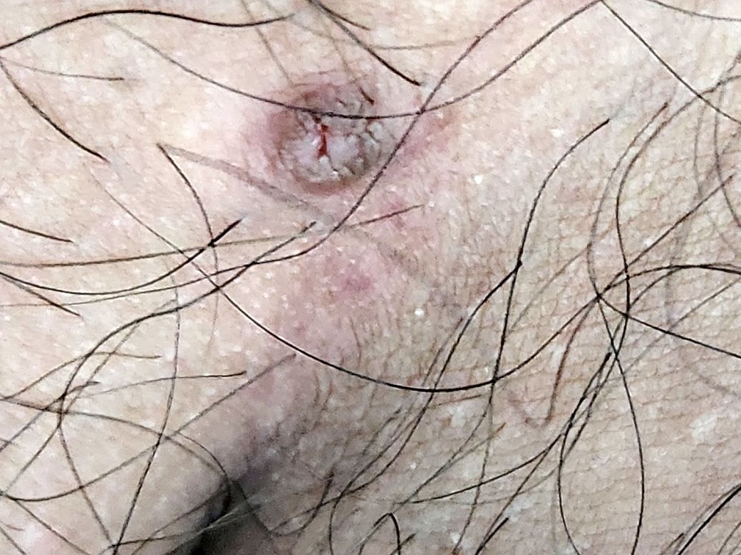 고환에 여드름? 비슷한게 났는데 아프지않고 물렁한 살이고 잘 밤에 간지러웠습니다검은점처럼 생겼는데 안에서 하얀색 무언가가 나와서 걱정입니다