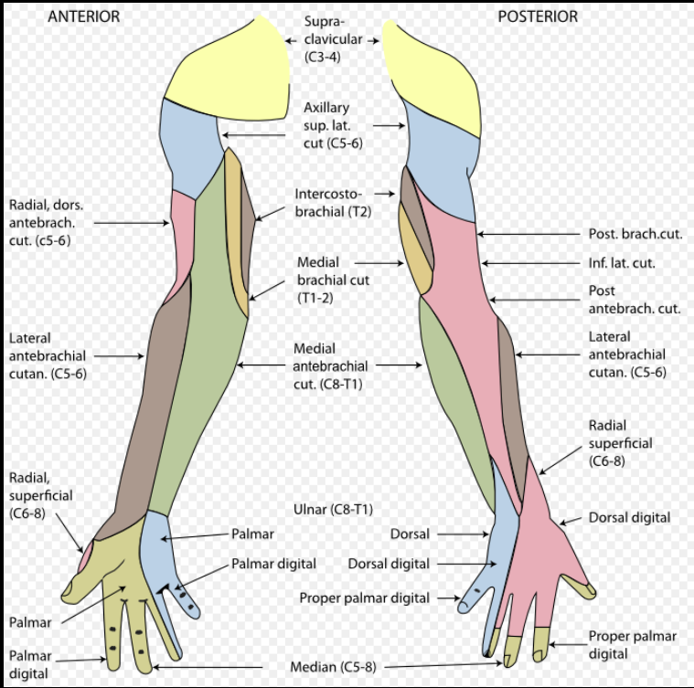저림이 아래그림의 피부분포중 한군데 분포와 일치하나요?