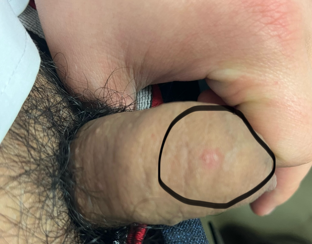 사진으로 보았을 때, 귀하의 성기 기둥에 생긴 붉은 반점은 단순 포진일 가능성이 높습니다. 단순 포진은 헤르페스 바이러스에 감염되어 발생하는 피부 질환입니다. 성관계를 통해 감염될 수 있지만, 자위만으로도 감염될 수 있습니다.단순 포진의 증상은 다음과 같습니다.