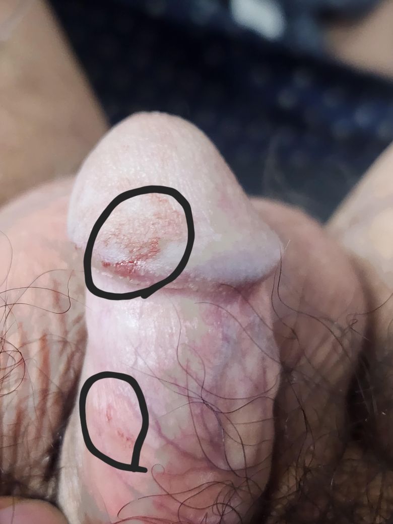올려주신 사진으로 미루어 자위 시 과도한 압박이 원인이 되었을 가능성이 생각됩니다.