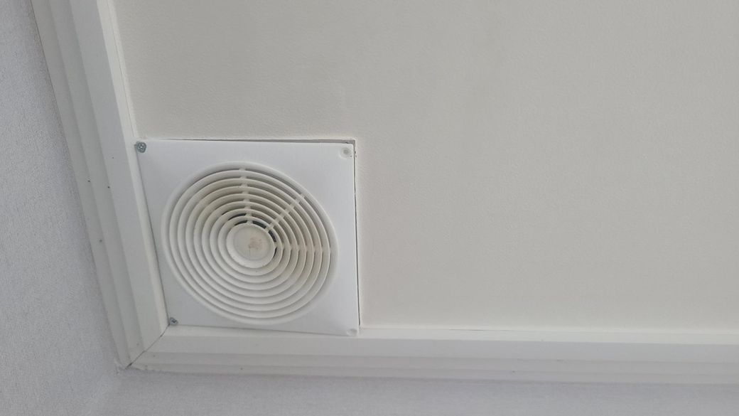 안녕하세요. 천장 모서리에 설치된 환풍기는 공기 순환 습기 제거 냄새 배출 등의 역할을 하기 때문에 함부로 박는 것은 권장하지 않습니다.