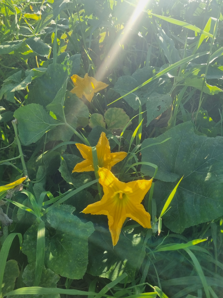 호박꽃은 크고 아름다우며, 호박은 식품으로서 다양하게 쓰이고 건강에도 좋습니다.