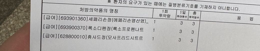 허리운동하라고 하셨는데 약처방 받은 사진도 올려봅니다.