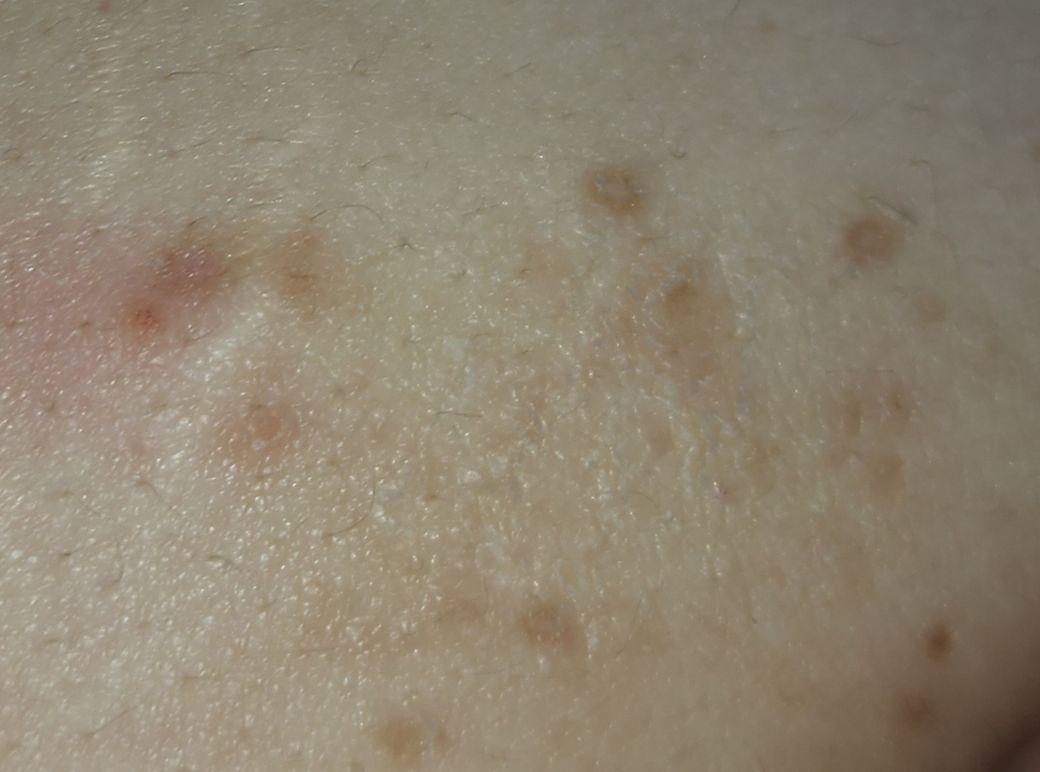 한달전쯤 배에 뭐가 올라와서 간지러워서 긁었습니다. 한 3개쯤?? 2주가 흐르고 또 뭐가 올라와서 긁었습니다. 그래서 저렇게 흉터? 가 남았네요
