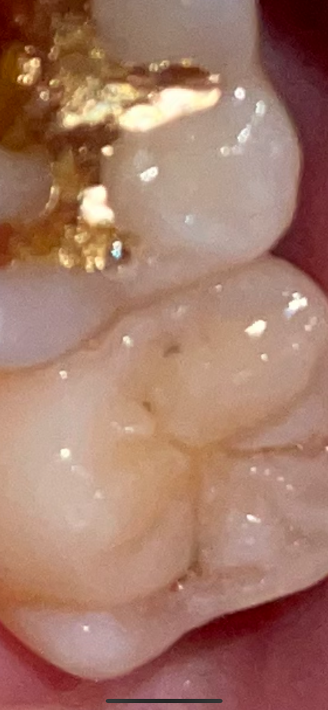 육안으로 봤을 경우에는 착색이 된것으로 보이며 충치는 아닐 가능성이 높습니다.