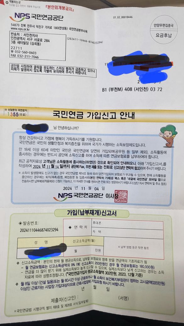 저는 직장인도 안고 사업자도 아닌데 갑자기 어제날짜로 국민연금측에서 소득활동 하니까 국민연금 가입 하라는 가입 납부재개 신고서라는게 왔습니다.