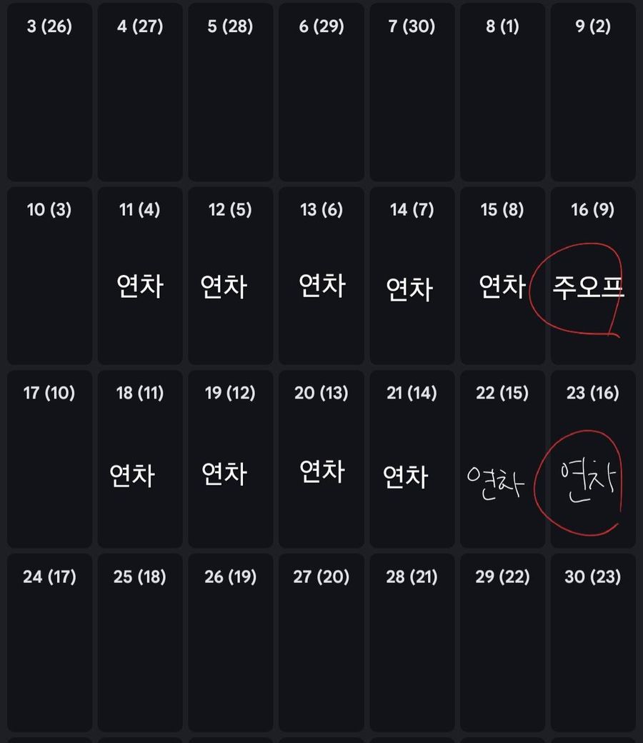첫째주처럼 주오프하루쓰고 5일만 연차가 사용되는건지