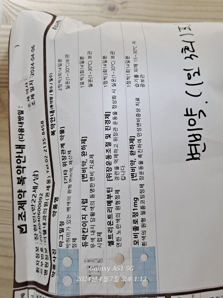 제가 조제 받은 변비약을 복용 할때