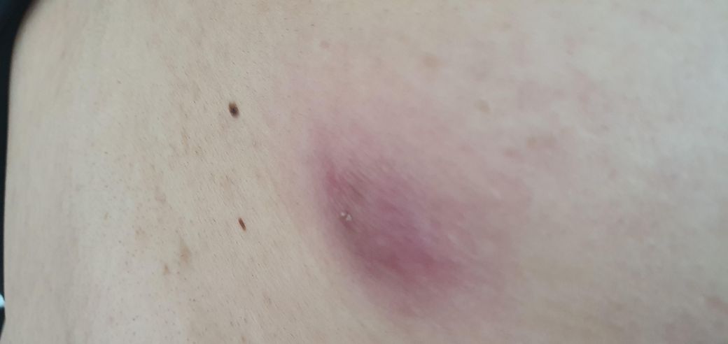 만지면 통증이 느껴지고 살짝 단단합니다.