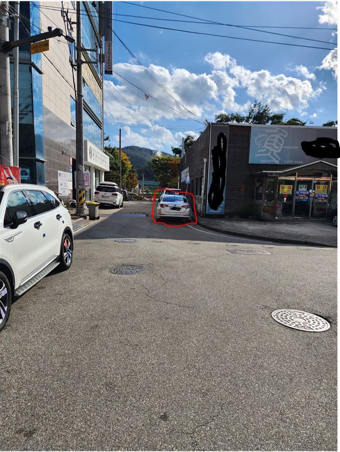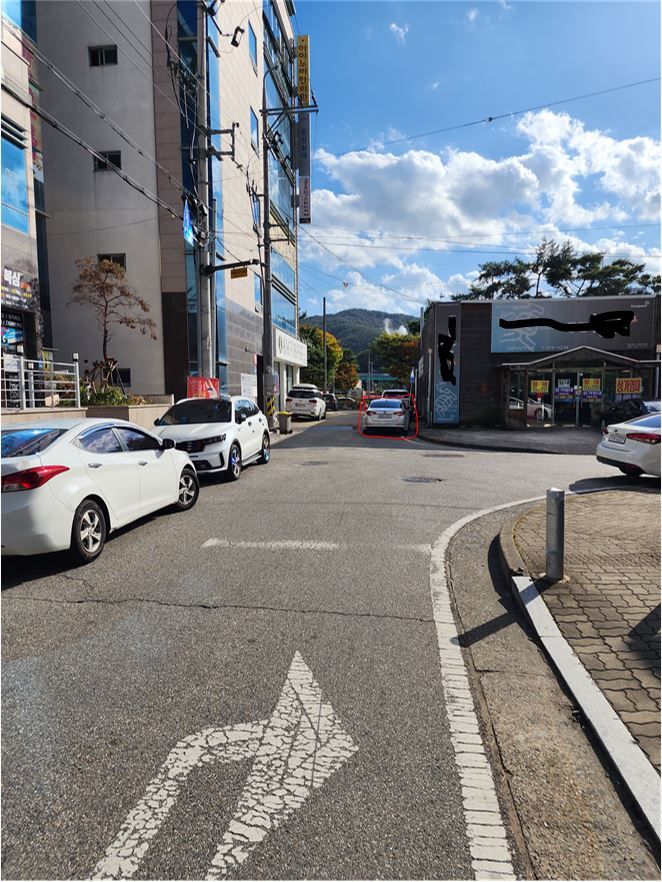 빨간색 표시 된 곳에 주차를 하였습니다,