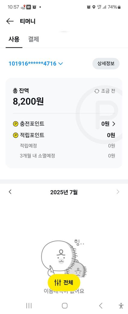 티머니에 잔액이 있다고 조금전에 발견을 했습니다.