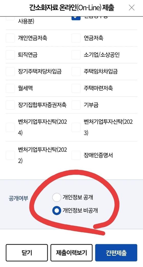 아래 개인정보 비공개로 선택하는것도 있던데