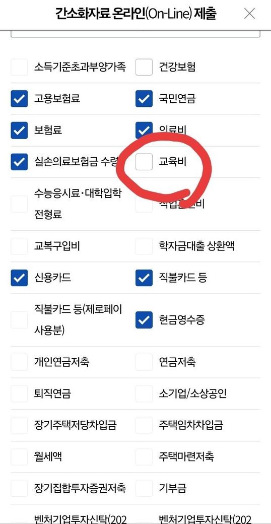 사진첨부)교육비 부양가족 이런거 있는데