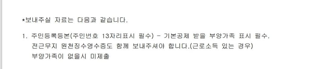 부양가족없을시 안보내두된다는데 있어두안보내면
