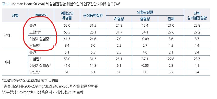 변하기가 쉽지 않습니다. 환자분의 경우는 위에 캡처한 위험요인, 금주/금연, 체중관리, 운동등
