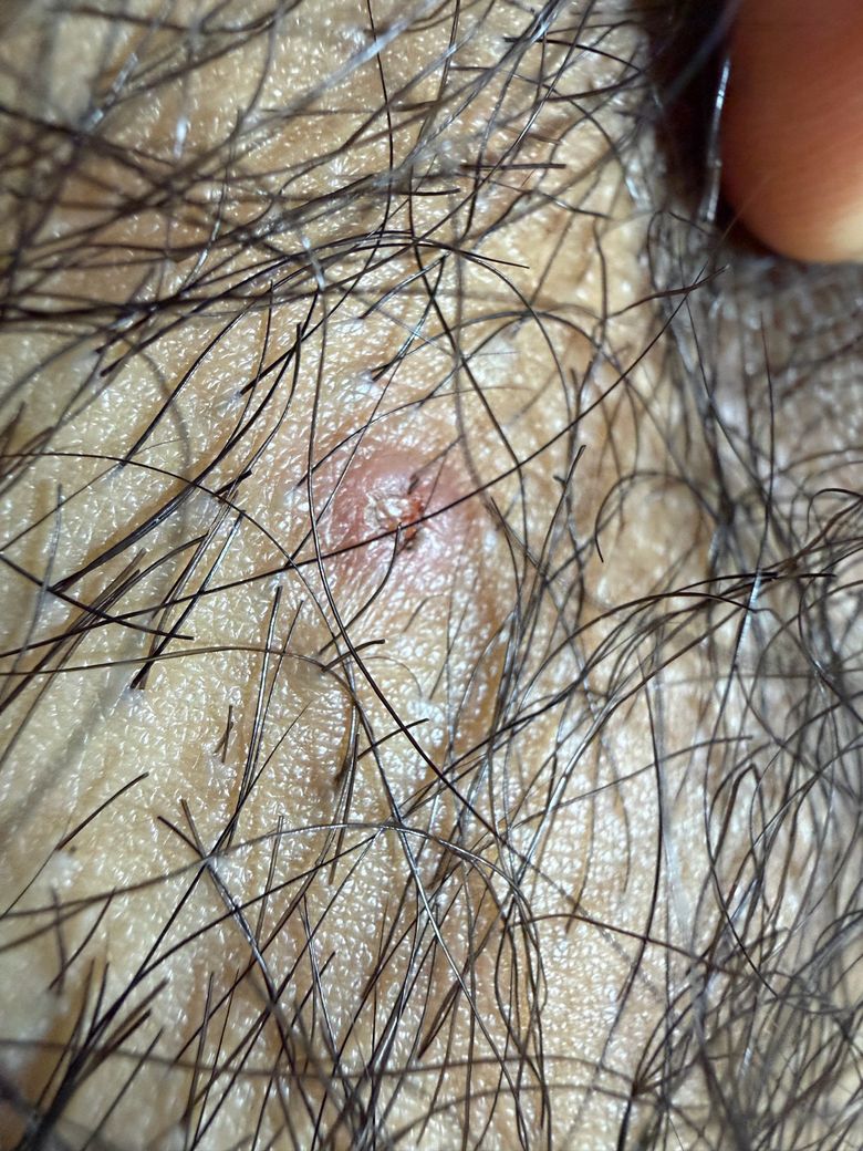 매독 가능성이 있을까요? 사진 부위는 음모부위입니다. 건들면 막 아프진 않고 상처부위를 만지는 느낌은 존재합니다.