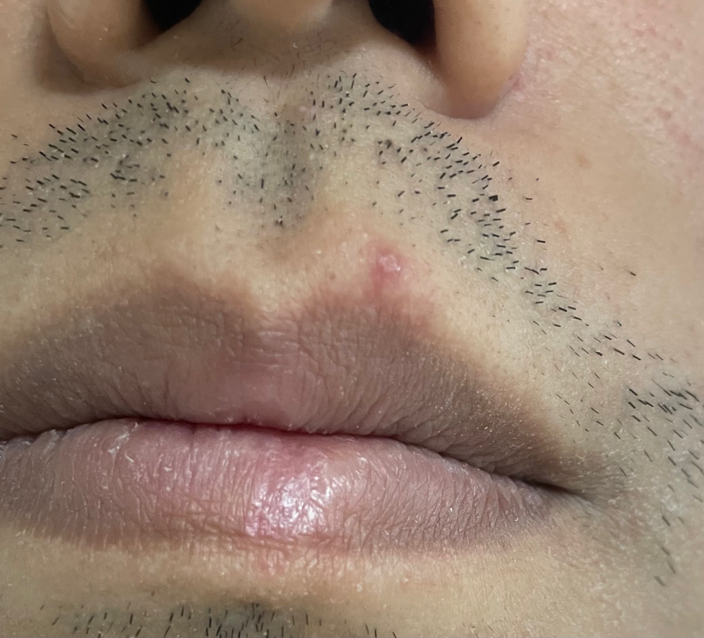 현재 병변은 헤르페스를 감별하는 것이 좋겠습니다.