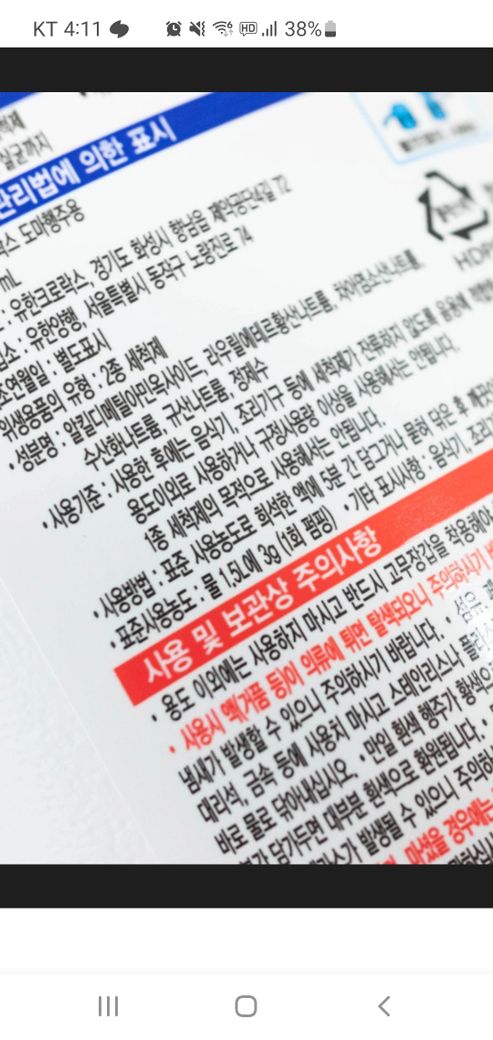 (락스뒷면 권장사항) 마스크는 안하거든요 ㅠ