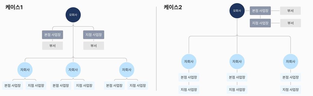 모회사, 자회사 간 조직도 표현에 대한 문의드립니다.