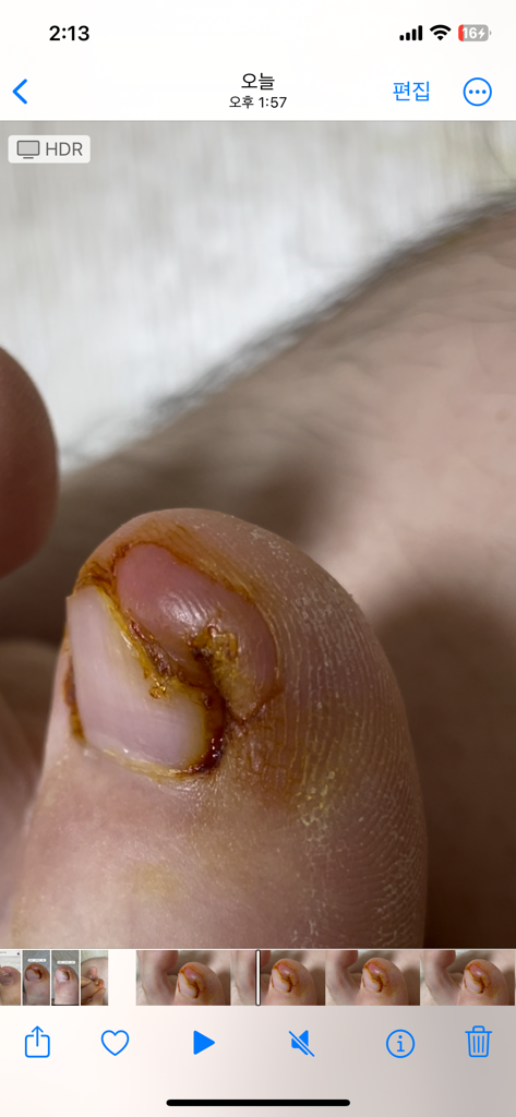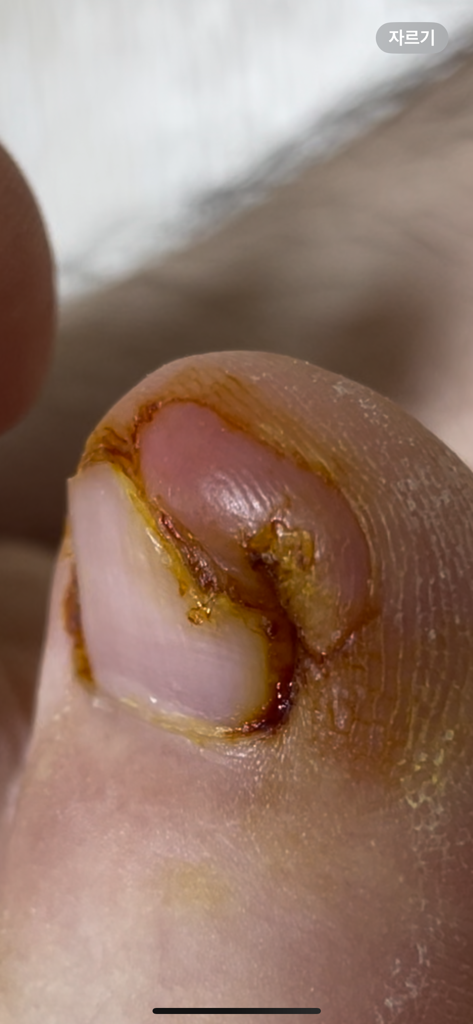 밑 내성발톱이 자꾸 통증을 유발해 제거한게 위에 사진입니다