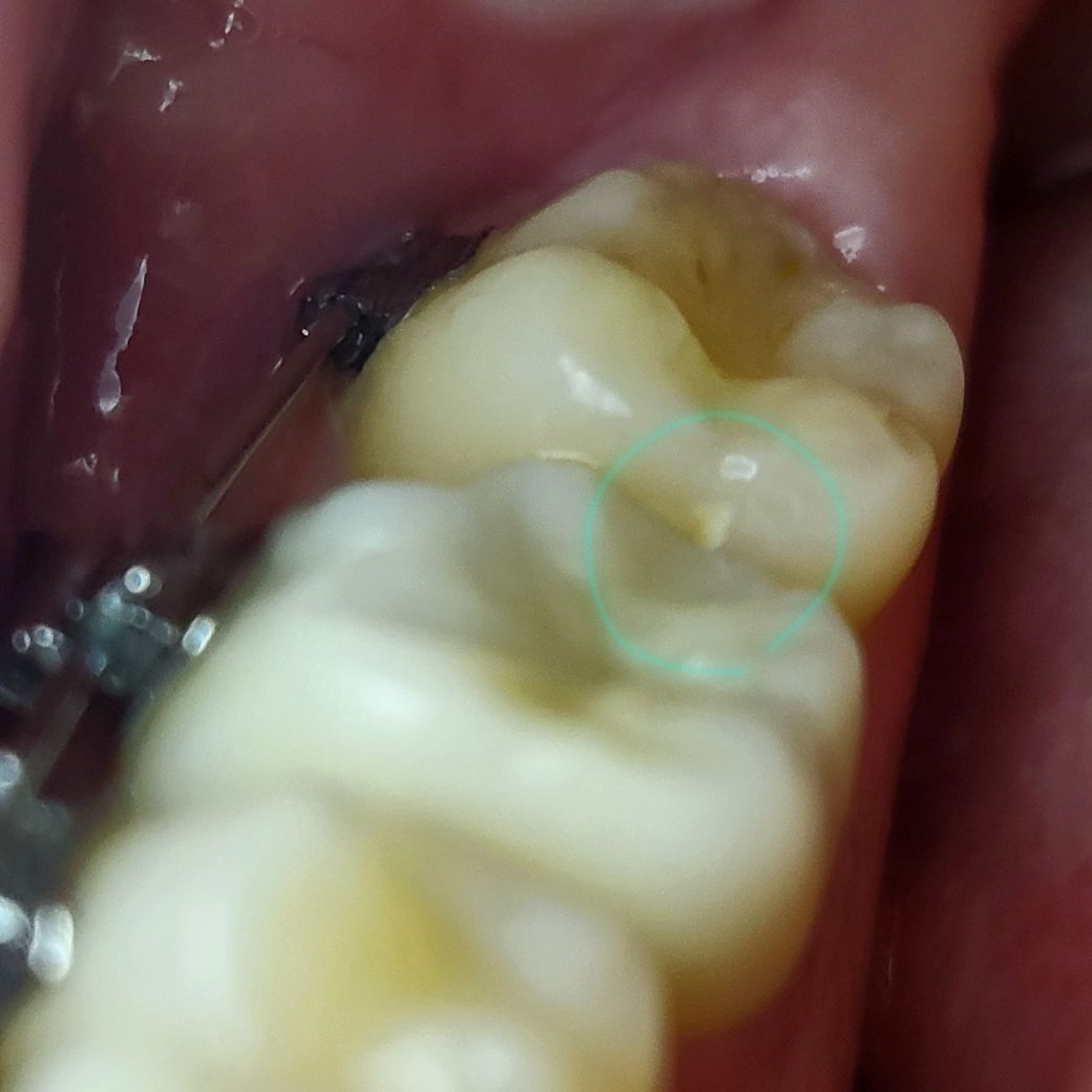 사진상에서도 바로 뒤의 어금니 인접면의 충치도 의심됩니다.