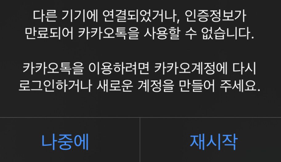 어느 날 갑자기 밑에 사진처럼 뜨더니 카카오톡이 먹통이 되었어요 삭제하고 다시 깔거나 오른쪽 재시작을 누르면 그동안 카톡 대화내용이 다 날아갈까 봐 무서워서 못하겠어요 카톡 보내지 지도 않고 오지도 않는 상황이라 매우 답답하고 불편하고 카카오페이도 못써요 ㅠ 설정 들어가서 대화 백업도 못해요 어떡하죠… 카카오톡 고객센터 문의하라는 말은 삼가 부탁드려요 ㅠ 아이클라우드에 백업하는 방법은 안되려나요? 대화내용 백업이 될지 궁금해요 잘 아는 분 제발 도와주세요 그리고 원래 pc 카톡도 연동이 되어있고 자동 로그인이었는데 갑자기 로그아웃이 되어버렸어요 근데 모바일 카톡 지금 상황이 상대가 보이스톡을 걸면 받아서 잘 통화는 할 수 있는 상황이지만 채팅창에는 뜨지 않는 아이러니한 상황입니다 비슷한 상황 겪은 분 있으신가요? 저는 다른 기기로 연결 시도한 적 없는데 해킹인걸까요…