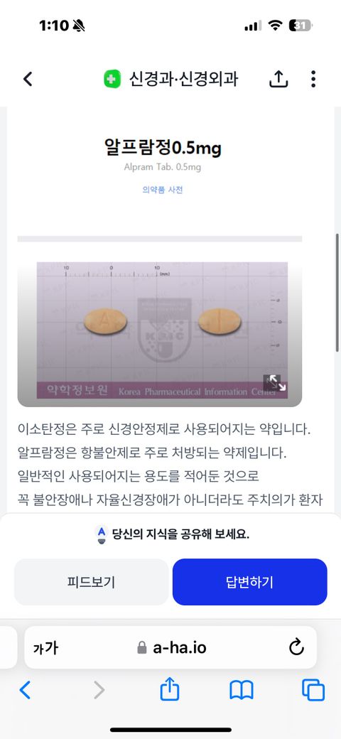 아침: 인데놀정 10, 브로마제팜정 3, 하이라제정 저녁: 인데놀정 10, 하이라제정, 루나팜정, 알프람정 0.5, 웰정 (신규처방 항우울제)