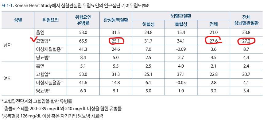 심뇌혈관질환에 가장 큰 영향을 미치는 요인은 고혈압입니다. 특히 뇌출혈의 경우 가장 영향이 지대합니다.