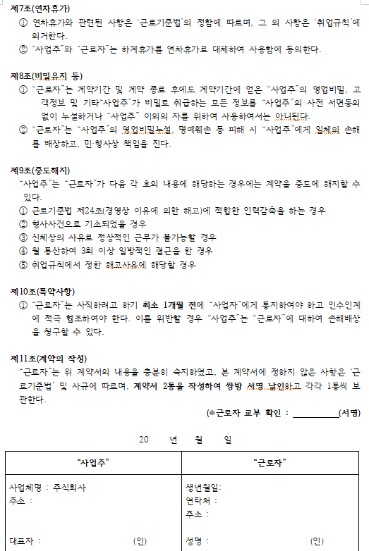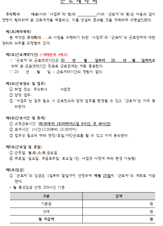 또한 근로계약서 양식 이렇게 진행해도 되는 부분인지 여쭤봅니다 ㅜㅜ