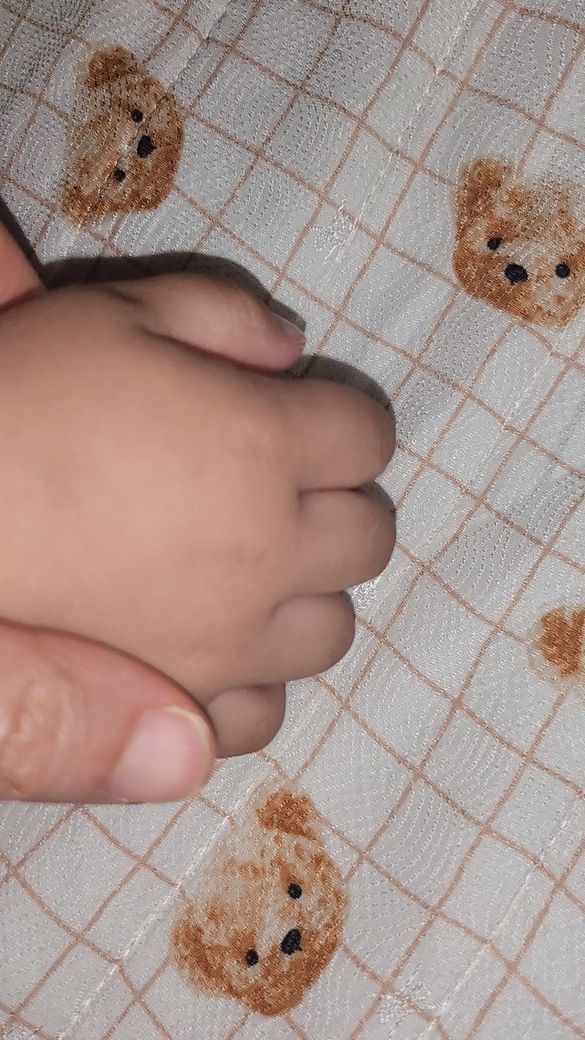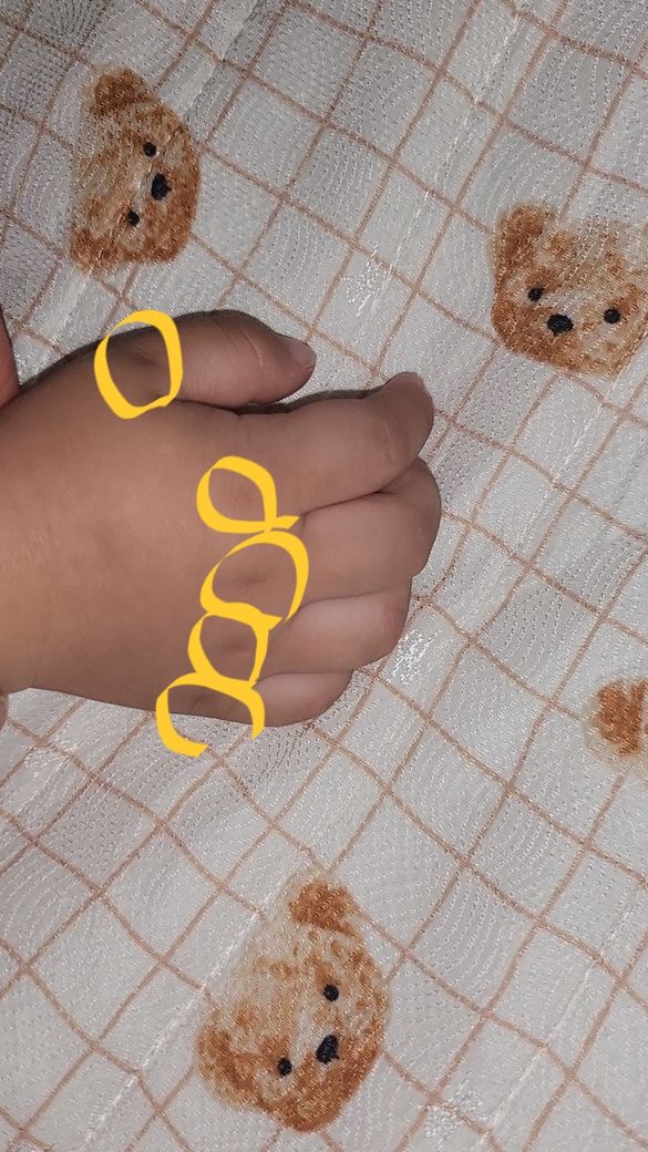 아기라서 손에 살이 많다보니 관절 부위에 오히려 살이 없어서 꺼져 보일 수 있습니다.