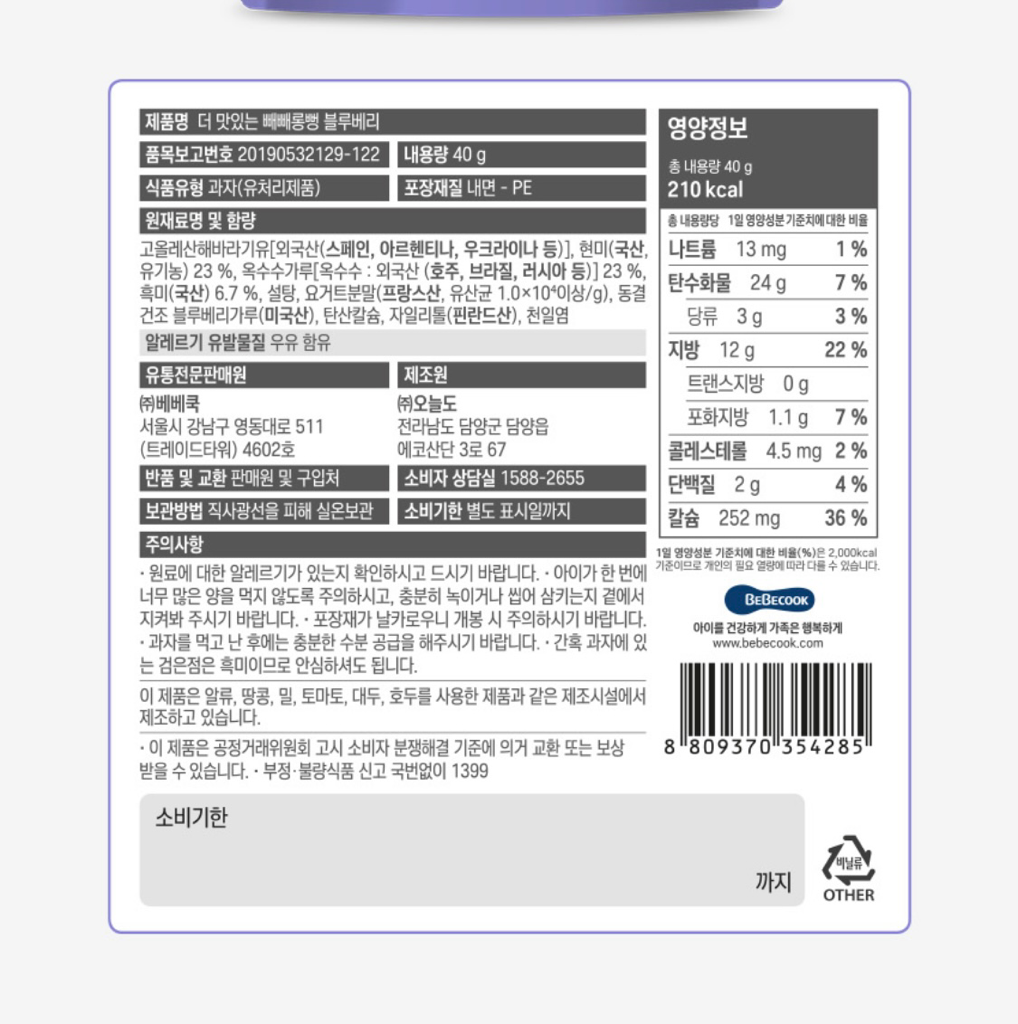 소아 비만과 당뇨를 일으킬 수 있기 때문에 당의 양은 많지 않아야 합니다.