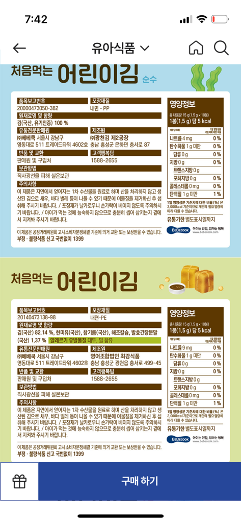 아이가 밥도 잘 먹고 이유식도 잘 먹는다면 일부러 간이 들어간 김 보다는 소금을 바르지 않는 김을 먹이는 게 좋을 것 같아요