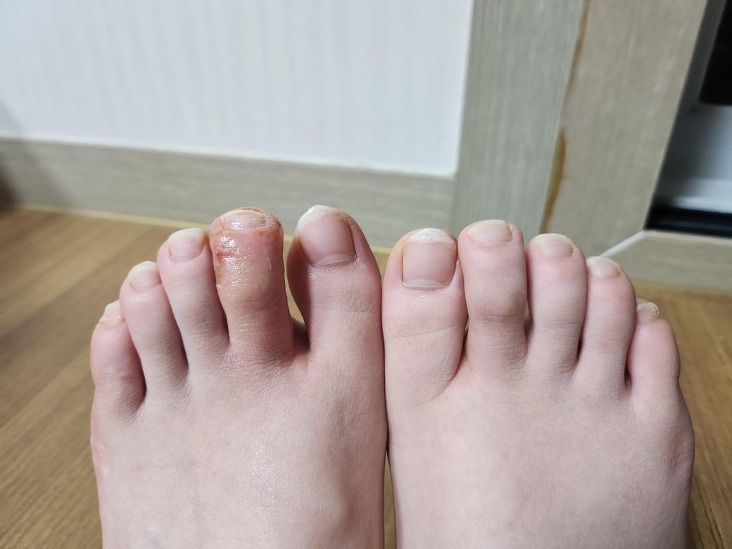 처음 냉동치료 받았을 때도 정말 아팠는데(못 걸을 정도로)그래도 하루 지나니까 나아졌는데 2차 치료를 한 후에는 4일정도 아픔이 유지되었습니다. 근데 아픈건 끝났지만 붓기가 심해지고 특히 엄청 간지러웠습니다. 그래서 병원을 갔더니 아프진 않은데 간지럽다 그리고 붓기가 문제다라고 하니 선생님께서도 처음 보는 경우다 일단 염증약이랑 바르는 약을 주셨습니다. 육관으로는 습진이나 무좀은 아니라고 하셨고요 그리고 주신 약을 바르면 간지러움이 더 심해질거나 그럼 습진이나 무좀이다라고 하셨고요. 근데 약을 바르고 먹으니 오히려 나았습니다. 근데 한 3주간 유지되길래 이건 안되겠다 싶어서 대학병원을 갔더니 이런 경우는 희귀한 케이스긴 하다. 그리고 써준걸 보니 냉동치료랑 연관이 있어보이긴 하다라고 하셨고요 그리고 동창이라고 병명을 내려주셨습니다. 그리고 한 2주 다녔고 다시 다 나아진담에 오라고 하셔서 안다녔는데 한 1주, 1주 반 지났는데 다시 간지러워지고 엄청 붓길래 다시 병원가서 약받아오고 먹은지 한 2일된 발이 저 사진입니다.