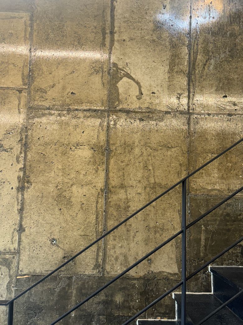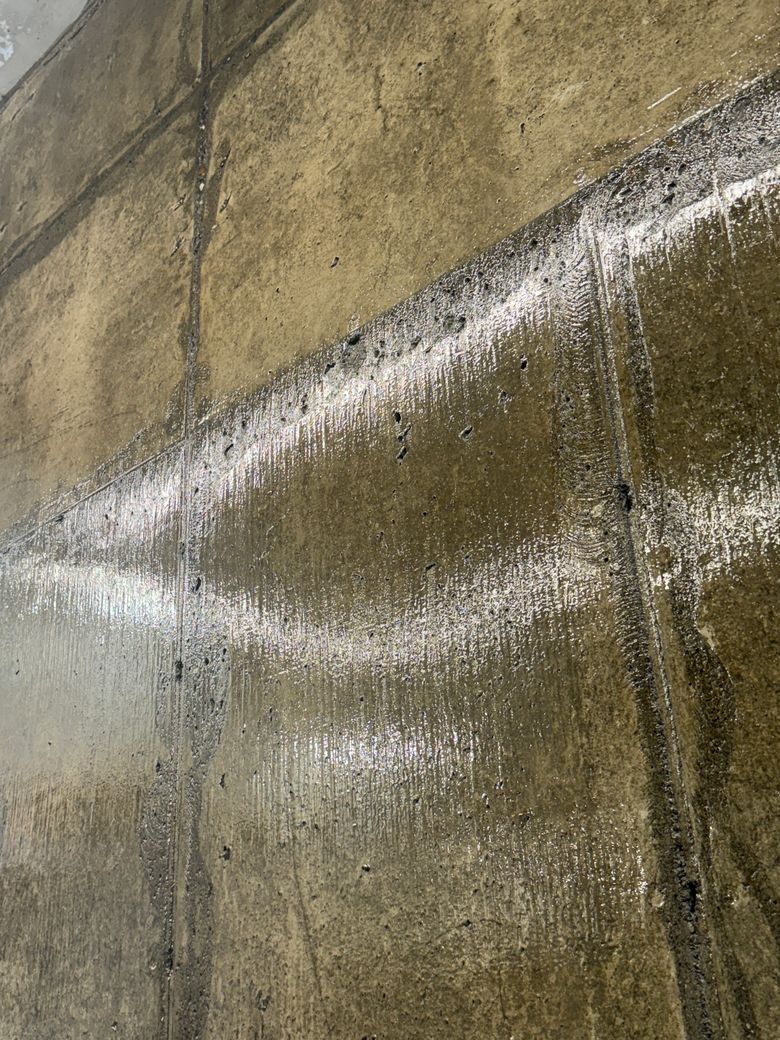 노출된 콘크리트에 투명하게 발라 놓은 건